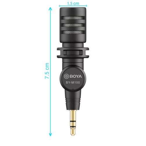 قبل از اینکه ادامه این شرح محصول رو بخونین، باید بگیم که اگه این میکروفون رو با آیفون یا آیپد میخواین استفاده کنین، باید برین سراغ مدل میکروفون مینی بویا مدل BY-M100D Lightning. اگر هم دیوایستون فقط از پورت USB Type C پشتیبانی میکنه، باید برین سراغ میکروفون مینی بویا مدل BY-M100UC.