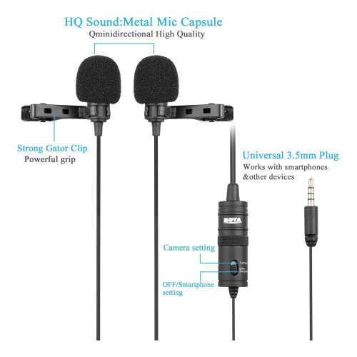 BOYA BY-M1DM Dual Omni-directional Lavalier Microphone open box