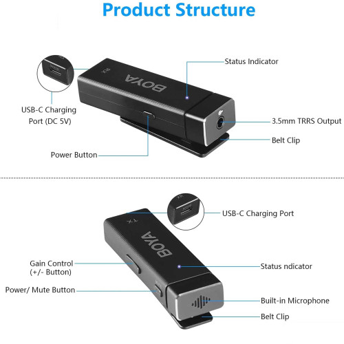 ویژگیهای ظاهری میکروفن بی سیم بویا مدل BY-W4