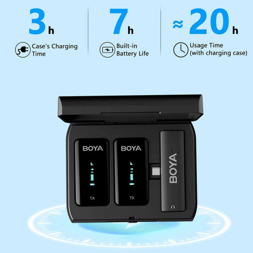 میکروفون یقهای BY-XM6-K6 از باتری لیتیوم-یون استفاده میکنه و با یه بار شارژ با استفاده از کابل 30 سانتیمتری، تا 7 ساعت میتونین ازش استفاده کنین. میزان شارژ باقیمونده هم روی صفحه نمایش فرستنده دیده میشه.