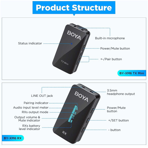مشخصات فنی میکروفن بی سیم بویا BOYA BY-XM6-S2 MINI