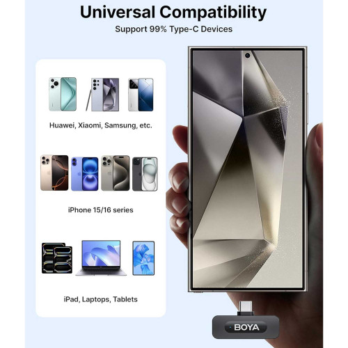 BOYA به عنوان برند معتبر در زمینه تجهیزات صوتی، همیشه توجه زیادی به کیفیت ساخت و راحتی استفاده از محصولات خودش داره. مدل V30 Type C با ویژگیهای منحصر به فردش، به شما این امکان رو میده که با موبایلهای اندرویدی دارای پورت Type-C و حتی سایر دستگاههای مشابه، صدای عالی و بینقصی ضبط کنید.