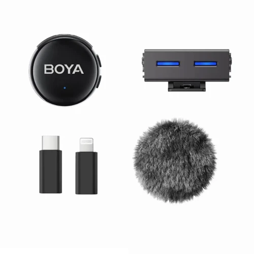 میکروفون یقه ای بی سیم تک کاربره بویا مدل BOYALINK 3 04 رابط Type-C و Lightning و جک 3.5 میلی متری