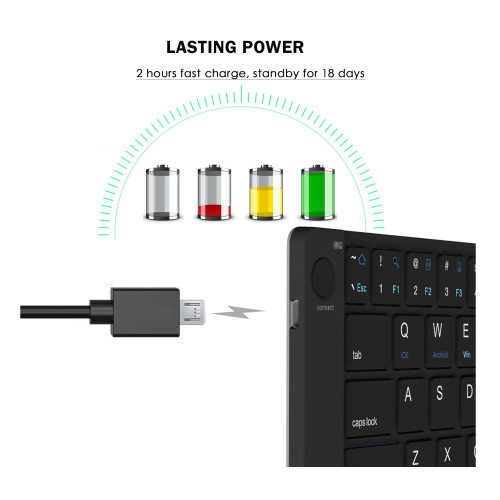 سایر مشخصات کیبرد | اتصال به صورت بلوتوث | راحتی در حمل و نقل | سایز کوچک | قابلیت تا شدن | 18 روز شارژدهی در حالت استندبای |