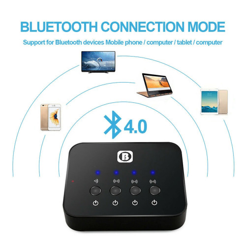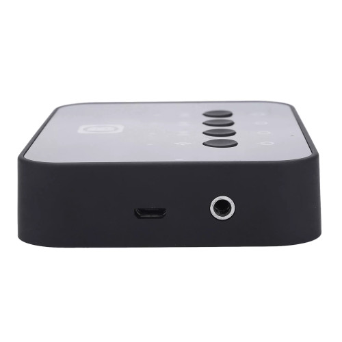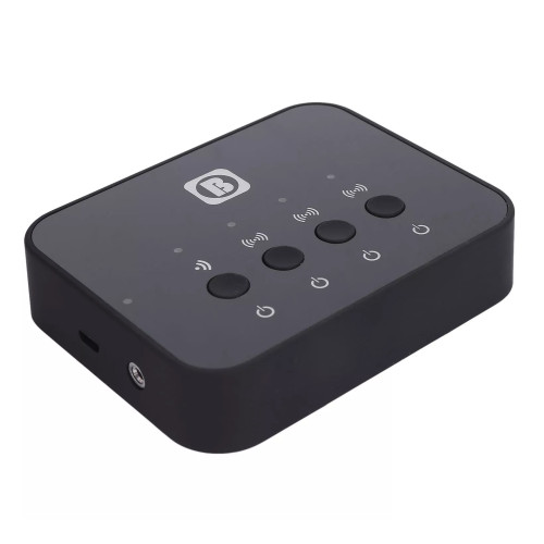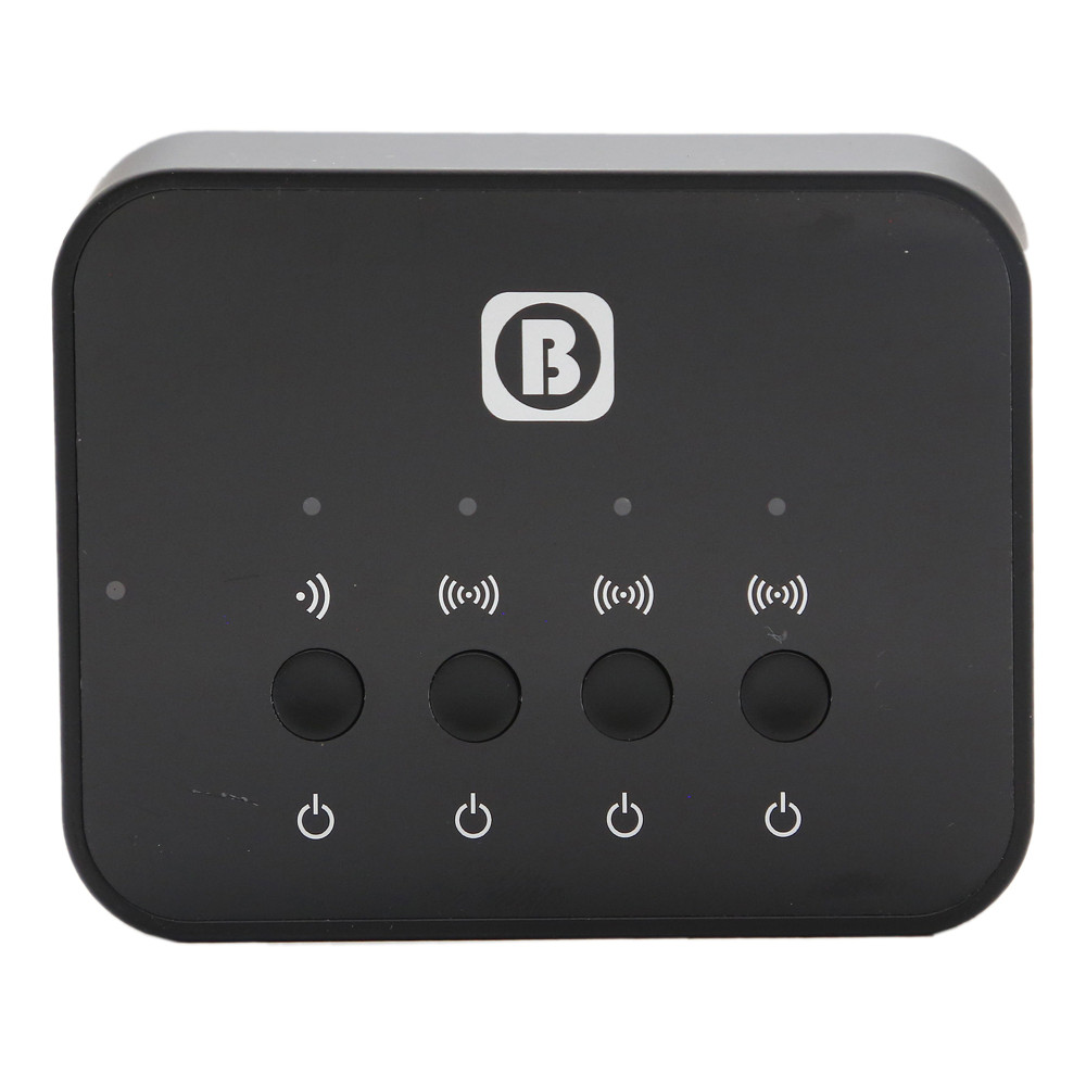 | توضیحات کنترل کننده | برای اتصال موبایل-تلویزیون به دستگاه میتوان از طریق بلوتوث یا کابل اقدام کرد | برای اتصال دستگاه به هدفون کافیست یکی از 3تا کلید را به مدت3ثانیه نگه داشته و هدفون هم در حالت بلوتوث باشد | دستگاه و هدفون به صورت خودکار پس از چند ثانیه جفت شده و اماده استفاده است، برای اتصال دو هدفون دیگر همین مراحل انجام شود | برای استفاده دستگاه به عنوان گیرنده کافیست موبایل رو از طریق بلوتوث به دستگاه وصل کنید و سپس اسپیکر(که بلوتوث ندارد) از طریق کابل AUX وصل کنید |
