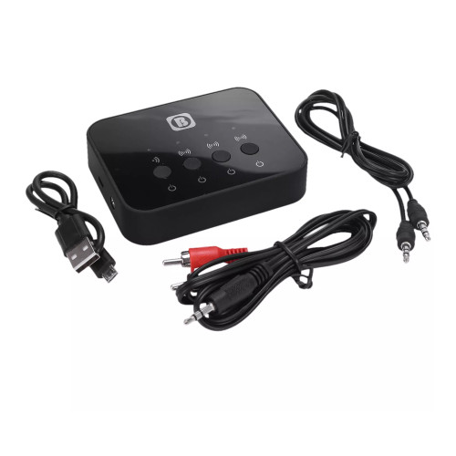 | سایر مشخصات فرستنده گیرنده | تاخیر بسیار کم در انتقال صدا | جفت شدن راحت و آسان | قابلیت اتصال همزمان به سه دستگاه | عمر طولانی باتری | مناسب برای اتصال یک موبایل-تلویزیون به 3تا هدفون یا اسپیکر | اتصال دستگاه به موبایل-تلویزیون از طریق بلوتوث و کابل(جک 3.5 میلی متری) | سرعت بالا در جفت شدن دستگاه با هدفون یا اسپیکر | جک 3.5 میلی متری هم بهصورت خروجی(اتصال به اسپیکری که بلوتوث ندارد) و هم ورودی(اتصال موبایل-تلویزیون به دستگاه) عمل میکند |