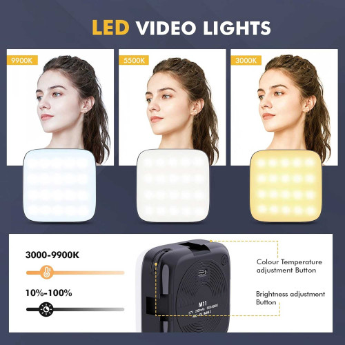 نور ثابت M11 با ابعاد ۳۵x۷۶x۷۶ میلیمتر و وزن ۱۰۱ گرم، طراحی کامپکت و سبکی داره که حمل و استفاده از اون رو بسیار راحت میکنه. این ویژگیها باعث میشن تا این نور ثابت بهراحتی در کیف دوربین یا تجهیزات جانبی قرار بگیره و در هر مکانی قابل استفاده باشه.