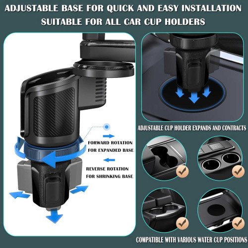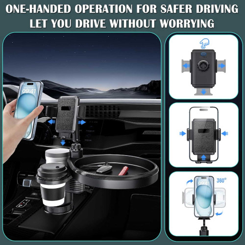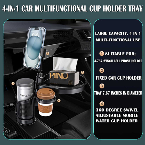 این نگهدارنده بهصورت چندمنظوره طراحی شده و قابلیت چرخش 360 درجه داره. با وجود پیچ تنظیم، میتونید سایز پایه رو با کاپ خودرو هماهنگ کنین و نیازی به ابزار خاصی برای نصب ندارین. نگهدارنده موبایل برای دستگاههایی با سایز بین 4.7 تا 7.2 اینچ مناسبه. جایگاه لیوان و سینی خوراکی هم به شما اجازه میده در سفرها یا توقفهای کوتاه، تجربه راحتتری داشته باشین.