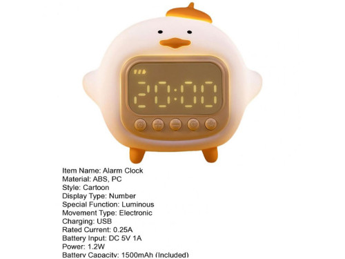 Cartoon Duck Alarm Clock Silicone Night Light C15