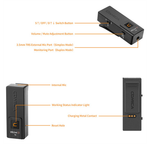 کامیکا با مدل VDLive10 MI یک میکروفون کاندنسر با الگوی قطبی Omni-Directional بیسیم رو عرضه کرده که این میکروفون از طریق رابط USB و جک ۳.۵ میلیمتری TRRS(۳ خط) و با محدوده عملکرد ۵۰ متر بدون مانع به هر وسیلهای متصل میشه. فرکانس پاسخگویی این محصول از 80 تا 20000 هرتز متغیر بوده و حساسیت اون حدود ۳۰±۲ دسیبل، با نسبت سیگنال به نویز (SNR) حدود ۷۰ دسیبل و SPL ۱۱۰ دسیبل با گستره دینامیکی ۸۶ دسیبل هستش که به وسیله باتری و تأمین برق مورد نیاز همه این ویژگیها رو خواهید داشت.
