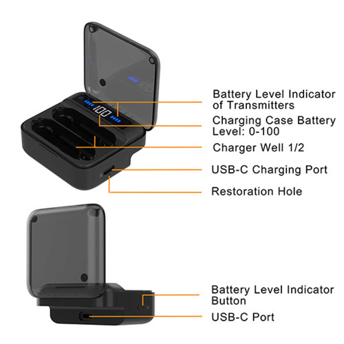 | اقلام همراه میکروفون | ۲ عدد فرستنده | ۱ عدد گیرنده | ۲ عدد خز بادگیر | ۱ عدد باکس شارژ | 1 عدد کابل Type-C |