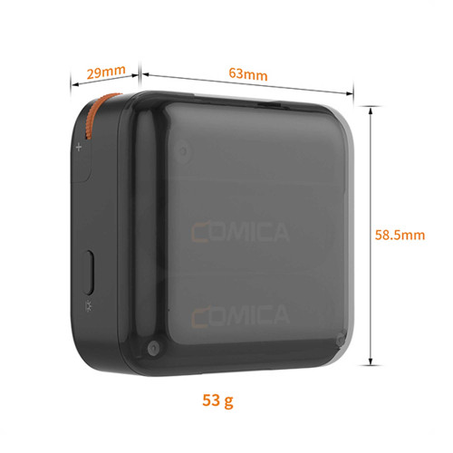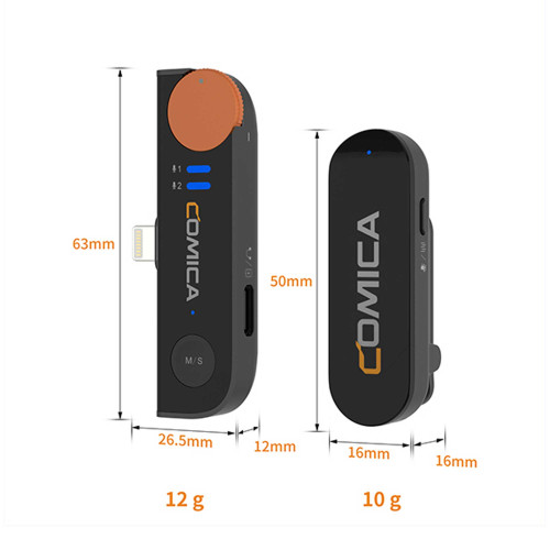 میکروفون بیسیم یقهای کامیکا مدل Vimo S-MI یه محصول کوچیک و قابل حمله که به یقه وصل میشه. ابعادی که برای این مدل در نظر گرفته شده جوریه که موقع استفاده چندان اذیتکننده نباشه و فضای خیلی زیادی رو اشغال نکنه. ابعاد گیرنده این میکروفون 12x26.5x63 میلیمتر، ابعاد باکس شارژ 29×58.5x63 میلیمتر و ابعاد فرستنده اون 16x50x16میلیمتره.