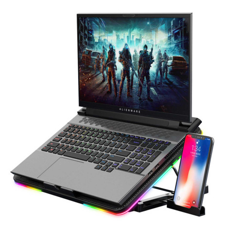 پایه خنک کننده لپتاپ کول کولد مدل F5 RGB محصولی زیبا و با دوام که قابلیتها و ویژگیهای زیادی رو تو خودش جا داده. از هولدر موبایل و نورپردازی RGB گرفته تا بسیاری از ویژگیهای که خرید اون رو منطقی و به صرفه بکنه.