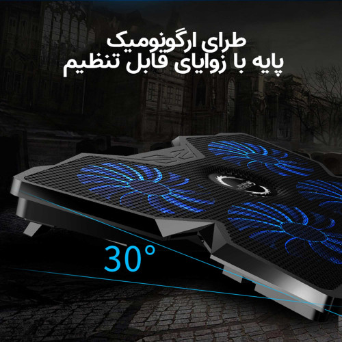 - دارای پایه نگهدارنده در قسمت پایین کول پد برای نگهداشتن لپ تاپ