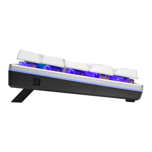 کیبورد مکانیکال گیمینگ با سیم و بی سیم کولرمستر SK622 SILVER یک کیبورد کامپکت هست که میتونین از اون به صورت باسیم و بیسیم استفاده کنین و از طریق پورت USB و بلوتوث به سیستم عامل گیمینگ شما متصل میشه. این کیبورد با مجهز به بلوتوث ورژن 4.0 بوده و از پولینگ ریت 125 تا 1000 هرتز برخورداره. این کیبورد مکانیکال از کلیدپایههای قرمز / آبی / قهوه ای برخورداره و برای تامین انرژی به Type-C / 5V، باتری نیازمنده. این کیبورد به نورپردازی RGB قابل شخصی سازی مجهز هستش و از یک باتری 4000 میلیآمپر لیتیون-یون برخورداره. برای بهره وری صد در صدی از این محصول نیاز هست که نرمافزار اختصاصی اون رو روی سیستم عاملتون نصب داشته باشین.