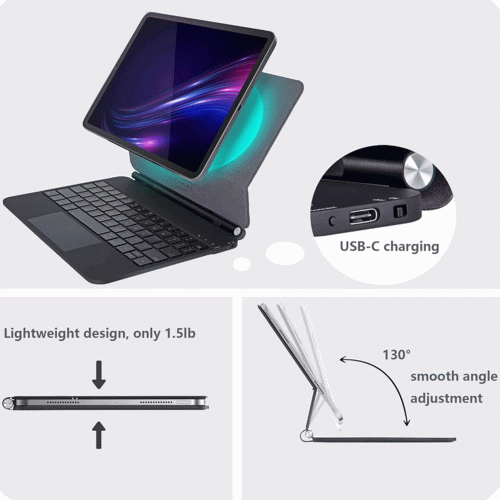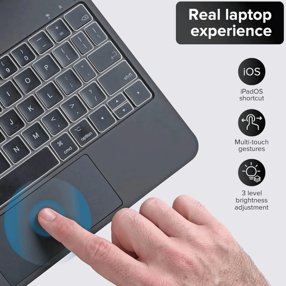 سایر ویژگیها | ترکپد یکپارچه، صفحه نمایش درصد شارژ، اتصال مگنتی آیپد، استند قابل تنظیم زاویه |