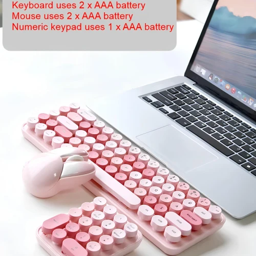 - منبع تغذیه: کیبورد: 2 عدد AAA، موس: 2 عدد AAA و کیبورد اعداد 1 عدد AAA