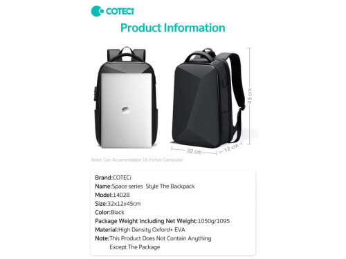 کوله پشتی مسافرتی لپ تاپ ضدآب کوتسی مدل 14028BK