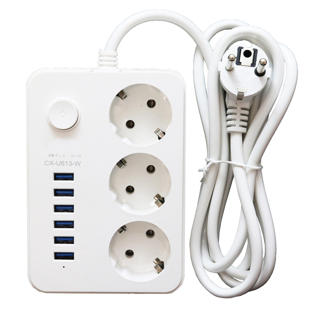 محصول سه راهی برق + شارژر USB مدل CX-U613 از جنس پلاستیک فشرده تولید شده و وزن و ابعاد مناسبی داره. این محصول از کابلی به طول 1.8 متر، 3 ترمینال برق و 6 پورت USB و دکمه پاور تشکیل شده. این سه راهی از منبع تغذیه برق شهری با ولتاژ 220 ولت استفاده میکنه و از تحمل بالایی در برابر حرارت برخورداره. همچنین، از مغزی مسی/برنجی (Phosphor Bronze Copper Sleeve) برای تحمل فشار زیاد بهرهمنده.