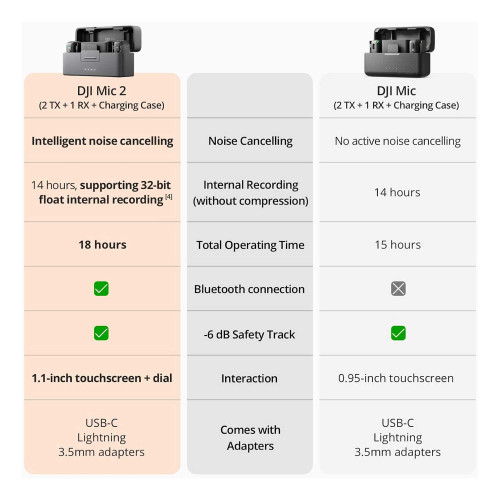 مقایسه میکروفون بی سیم یقه ای موبایل دی جی آی DJI DUAL MIC 2 با میکروفون یقه ای بی سیم دی جی آی مدل Dji Mic