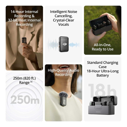 از ویژگیهای منحصربهفرد دیگه میکروفون DJI DUAL MIC 2، حافظه داخلی 8 گیگابایتی اونه که میتونه تا 15 ساعت صدا رو براتون ضبط کنه. این یعنی شما به راحتی میتونین برای ساعتها محتواهای مورد نظرتون رو بدون نگرانی از پر شدن حافظه ضبط کنین و بعد اونها رو به سیستم کامپیوتری یا گوشی انتقال بدین.