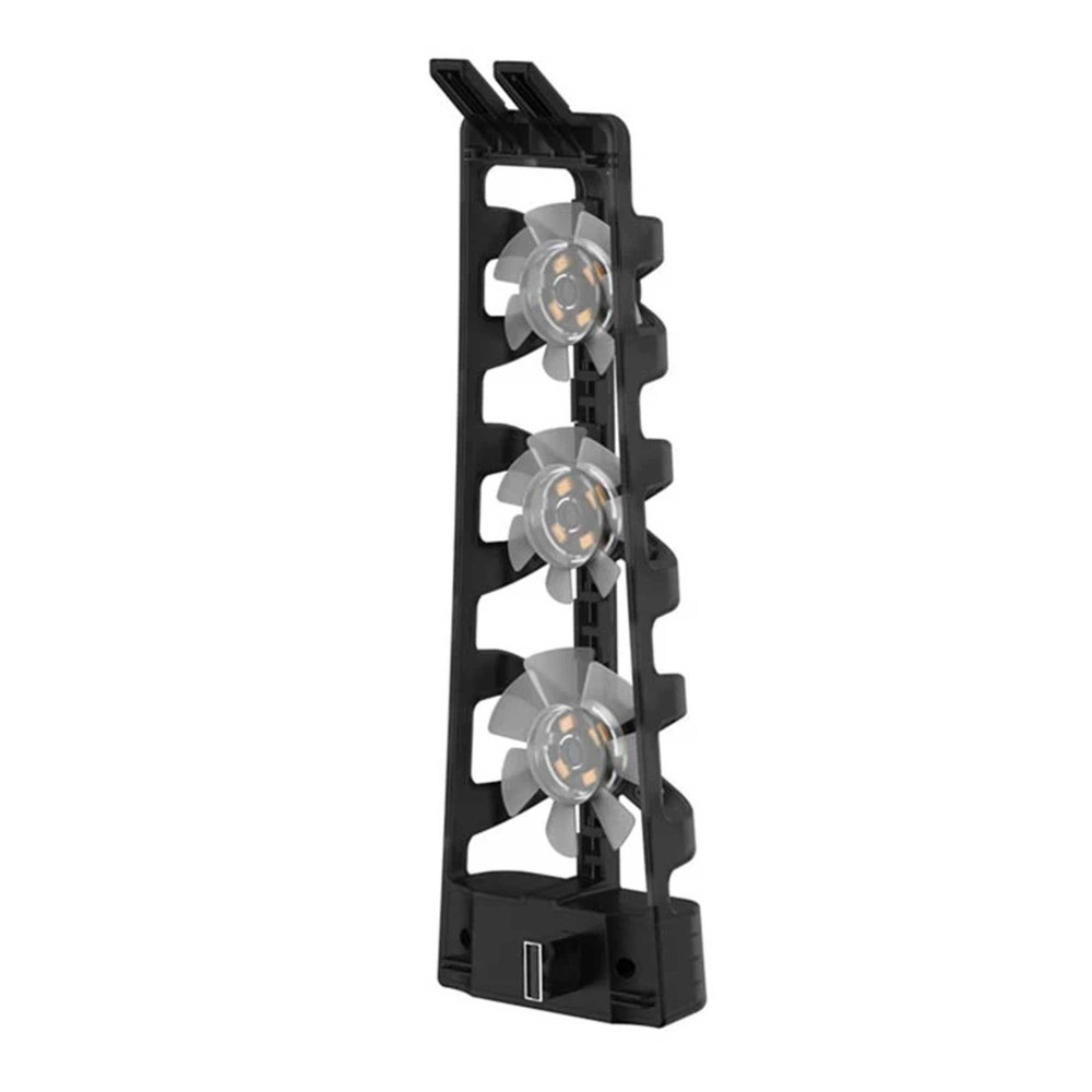 این فن با طراحی جمعوجور و کاربردی، بهراحتی کنار کنسول PS5 قرار میگیره و فضای زیادی هم اشغال نمیکنه. وزن اون سبک و جابهجاییش آسونه. نورپردازی آبی که در طراحی این مدل در نظر گرفته شده، جلوهای خاص و مدرن به ست گیمینگتون میده. همچنین وجود نگهدارنده هدست در کنارش باعث میشه همیشه همه چیز مرتب و دمدست باشه و جای مناسبی برای نگهداری هدفون داشته باشین.
