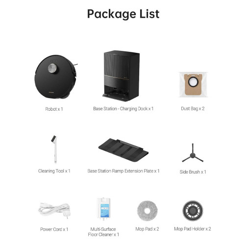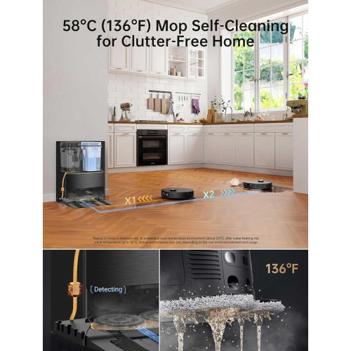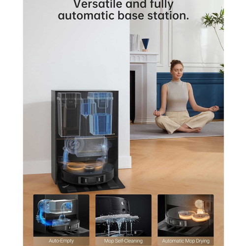 | ظرفیت مخزن | آب تمیز: 4.5 لیتر | آب کثیف : 4 لیتر | مخزن داخل جارو رباتیک: 80 میلی لیتر | مخزن زباله داخل جارو رباتیک: 300 میلی لیتر | مخزن گردو غبار داخل ایستگاه: 3.2 لیتر |