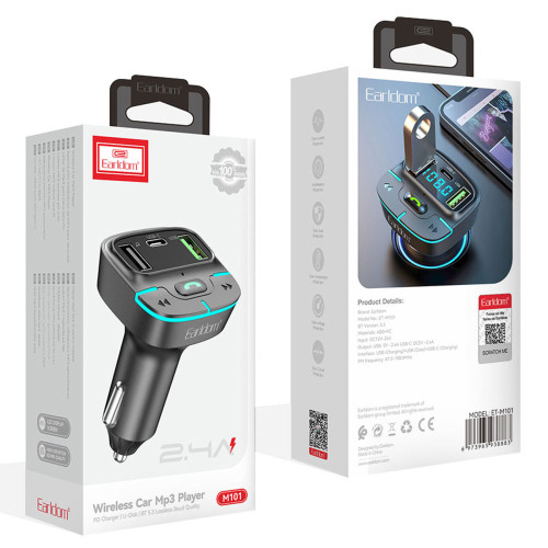 شارژر فندکی فست شارژ ماشین و گیرنده بلوتوثی ارلدام مدل ETM85