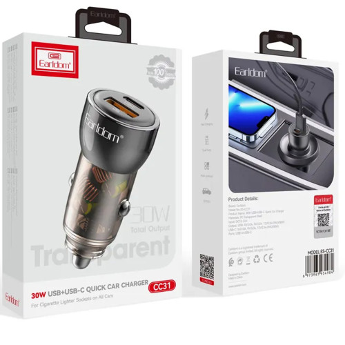 شارژر فندکی خودرو Type-C و USB ارلدام مدل CC31