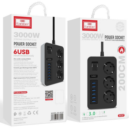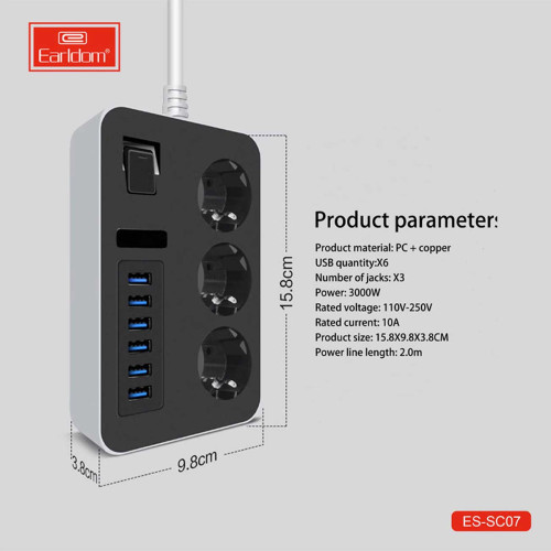 چندراهی برق ارتدار 3 سوکت ارلدام مدل SC07