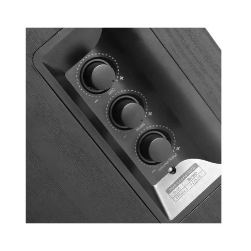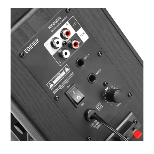 بدنه اسپیکر R1580MB از چوب MDF ساخته شده که علاوه بر ظاهر زیبا و کلاسیک، کمک میکنه صدا گرمتر و طبیعیتر به گوش برسه. ابعاد دستگاه ۱۸ در ۲۳ در ۱۴ سانتیمتر هستن، یعنی نه خیلی بزرگ و نه خیلی کوچک، به راحتی روی میز کار یا کنار مانیتور جا میشه بدون اینکه فضای زیادی اشغال کنه. طراحی چوبی باعث شده این مدل ظاهر آراستهای داشته باشه که با دکوراسیون اتاق یا دفتر به خوبی هماهنگ میشه.