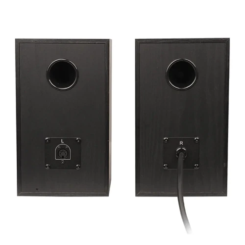 ابعاد سابووفر 31×26.5×29 سانتیمتر هست و اسپیکرها هم با ابعاد 17×13×22 سانتیمتر طراحی شدن. این اندازهها باعث میشه راحت روی میز تلویزیون، میز کار یا حتی توی اتاق نشیمن جا بگیرن بدون اینکه فضای زیادی اشغال کنن. ظاهر کلاسیک و رنگبندی جذابش هم باعث میشه با هر دکوراسیونی هماهنگ باشه.
