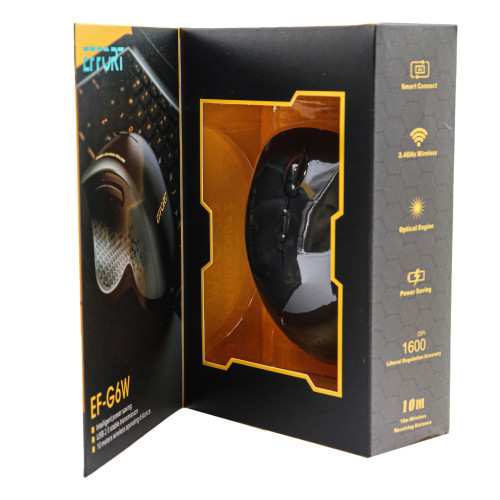 ماوس افورت EF-G6W به شکلی طراحی و تولید شده که وزن 77 گرمی داره و ابعادش 48×113×80 میلیمتره. جنس این ماوس از ABS یا پلاستیک مقاومه. روی این ماوس 6 کلید وجود داره که میتونین با این کلیدها به راحتی کامپیوترتون رو کنترل کنین.