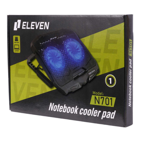 خنک کننده لپتاپ مدل N701 دو فن داره که با سرعت 100 دور در دقیقه کار میکنن؛ اما حداکثر 15 دسیبل صدا داره که اصلا حس نمیشه. کول پد ELEVEN مدل N701 به همراه یه کابل با طول 50 سانتیمتر بهتون داده میشه و با ویژگیهای منحصربهفردی که داره، به خوبی قطعات داخلی لپتاپتون رو خنک نگه میداره. توی کول پد N701 ELEVEN نور پسزمینه آبی رنگ هم دیده میشه که ظاهرش رو خیلی جذابتر کرده و موقعی که برقش تامین میشه، میتونین اون رو ببینین.