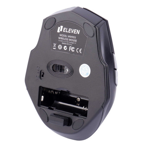 ماوس WM903، کلید روشن و خاموش کردن داره و وقتی دیگه کاری باهاش ندارین، بهتره که ماوس رو خاموش کنین. حواستون باشه که این محصول در برابر آب، مقاومت نداره. اما در مقابل گردوغبار، کاملا مقاومه. برای استفاده از این ماوس وایرلس Eleven، کافیه دانگل یواسبی رو به کامپیوتر یا لپتاپ بزنین و ماوس رو روشن کنین.
