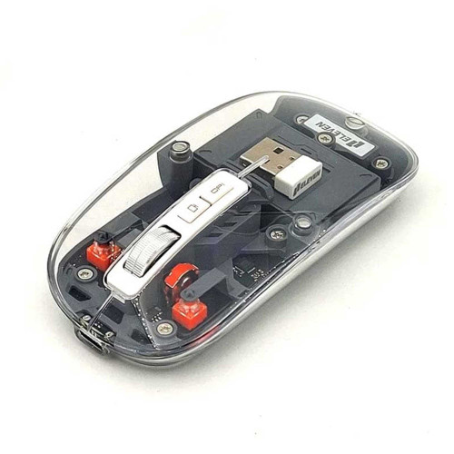 ماوس سایلنت الون مدل WM912 یه مدل خیلی جذاب و پرطرفداره که با ظاهر شیشهای و شفاف، توجه خیلی از کاربرها رو به خودش جلب کرده. جنس بدنه این ماوس از ABS یا پلاستیک مقاومه و روی اون 5 کلید قرار گرفته که هرکدوم یه کار مخصوص رو انجام میدن. برای مثال دکمه WNDOWS رو روی ماوس میبینیم که صفحه دسکتاپ کامپیوتر رو بهطور کامل خالی میکنه.