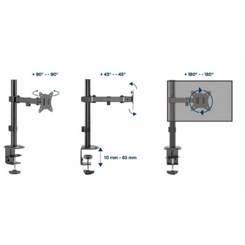 سایر مشخصات | قابلیت تنظیم ارتفاع و زاویه مانیتور به صورت دستی و با استفاده از پیچ تنظیم ارتفاع | نصب این نگهدارنده از طریق گیره نگهدارنده C شکل به لبه میز | افزایش فضای در دسترس بر روی میز و نظم دهی بیشتر به میز کار |