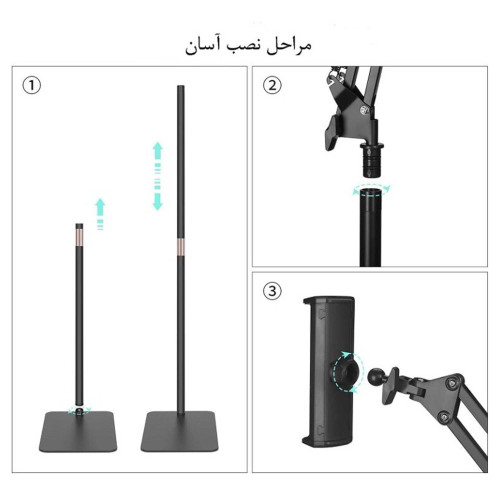 - بازوی متحرک با قابلیت تنظیم ارتفاع و زاویه دلخواه