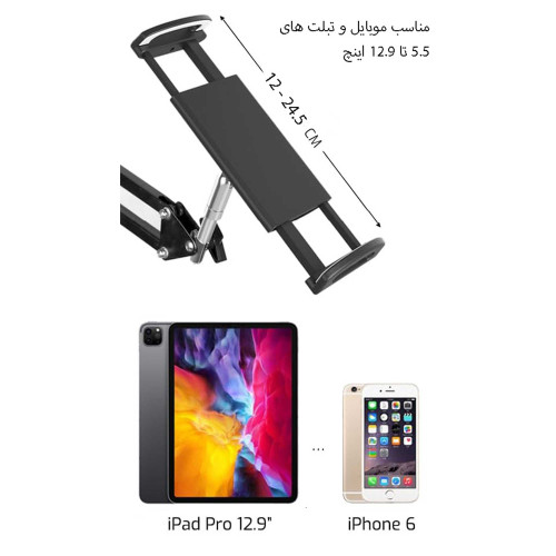 این پایه قابلیت نگهداری هم موبایل و هم تبلتهایی تا ۱۲.۹ اینچ رو داره. پس میتونین با خیال راحت برای انواع دستگاهها ازش استفاده کنین.
