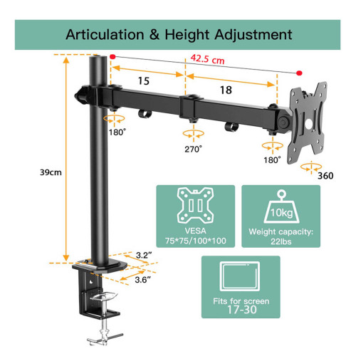 - مناسب مانیتورهای 17 تا 30 اینچ دارای محل اتصال مانیتور مطابق استاندارد VESA