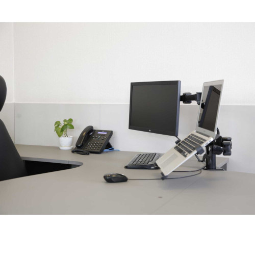 - قابلیت استفاده همزمان از مانیتور و لپ تاپ و تغییر موقعیت آنها نسبت به هم