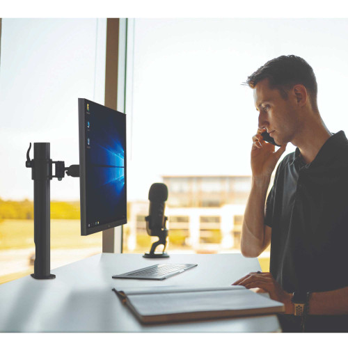 با استفاده از پایه نگهدارنده ارگو مدل WLA010 میتونین فضای موجود روی میز کارتون رو نظم بدین؛ چون پایه این محصول داخل میز یا به لبه اون وصل میشه و دیگه چیزی برای اشغال کردن سطح میز وجود نداره.