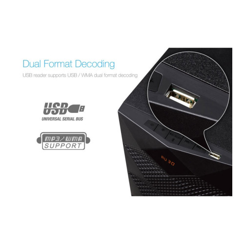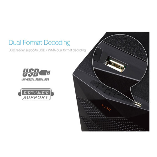 سایر مشخصات اسپیکر | قابلیت تنظیم TREBLE از روی کنترل | قابلیت تنظیم BASS از روی ساب ووفر | دارای بدنه چوبی جهت تقویت صدا | رادیو FM دیجیتال با امکان ذخیره سازی ۱۰۰ کانال رادیویی | دارای صفحه نمایش |