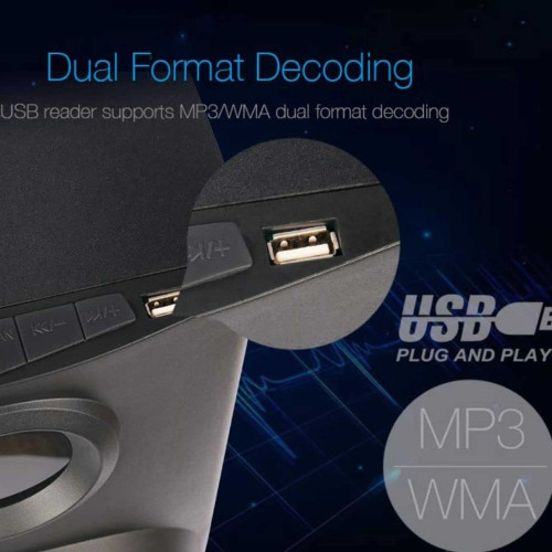 | سایر مشخصات اسپیکر | قابلیت تنظیم TREBLE از روی کنترل | قابلیت تنظیم BASS از روی ساب ووفر | دارای بدنه چوبی جهت تقویت صدا | رادیو FM دیجیتال با امکان ذخیره سازی ۱۰۰ کانال رادیویی | دارای صفحه نمایش |