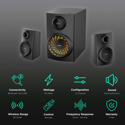 تعداد اسپیکرهای این دستگاه 2تاست و تعداد ووفرهای این دستگاه هم 1 دونهاس. توان واقعی هرکدوم از اسپیکرهای این دستگاه 15 واته، ساب ووفر این اسپیکر 16 وات توان داره و در کل این اسپیکر بلوتوثی به اندازه 46 وات توان داره. فرکانس پاسخگویی این اسپیکر 20000 تا 200 هرتز، ساب ووفر این دستگاه هم 140 تا 35 هرتزه.
