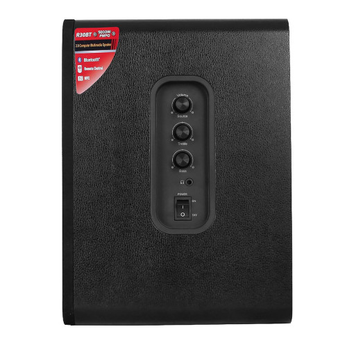اسپیکر مدل R30BT یکی از باکیفیت ترین تولیدات برند F&D در زمینه طراحی و تولید بلندگو و اسپیکرهای رومیزی و بلوتوثی به شمار می رود که دارای ساختاری متشکل از یک عدد اسپیکر و یک عدد ساب ووفر با بدنه از جنس MDF به ابعاد 281×351×427 میلیمتر و وزن 6.3 کیلوگرم بوده و توان خروجی کلی آن به میزان (25×2) وات است. طراحی صوتی دو طرفه این محصول باعث شده قدرت پخش و پراکندگی صدا را بالا ببرد، بدون این که هیچ گونه تغییری در صدا به وجود آید. این اسپیکر بلوتوثی همانطور که از عنوانش مشخص است به فناوری بلوتوث نسخه 4.0 مجهز است که از این طریق می تواند به دستگاههای میزبان مجهز به این فناوری ارتباطی متصل و فایل های مورد نظر کاربر را با کیفیتی عالی پخش کند، البته علاوه بر این، اسپیکر مورد نظرمان از درگاه ارتباطی جک 3.5 میلی متری صدا (AUX) نیز بهره می برد که این ورودی علاوه بر تبیین روش ارتباطی با سیم بودن این دستگاه، قابلیت اتصال هدفون به آن را نیز فراهم میکند. اسپیکر مدل R30BT با فناوری ارتباطی بلوتوث قادر است انواع دستگاهها همچون موبایل و گوشی های هوشمند، تبلت و لپ تاپ را پوشش دهد و در این زمینه برد آن به میزان حداکثر 10 متر برآورد شده است. این محصول با بهرهگیری از سابووفرهای 4 اینچی و تیوترهای یک اینچی با ارائه صدایی HiFi که از اعوجاج بسیار کم و بیس بسیار دلانگیزی برخوردار است، برای استودیوهای ضبط صدا به دلیل تفکیک صدای بسیار عالی که دارد مناسب است. علاوه بر آن فرکانس پاسخگویی صدا در اسپیکر فوق در حدود 30 هرتز تا 20 کیلوهرتز است. در پنل کناری این دستگاه سه دکمه چرخان جهت کنترل صدا، بیس و treble تعبیه شده است و در کنار آنها نیز دکمه خاموش و روشن نیز قرار گرفته است. از دیگر ویژگی های فنی و مزایای کاربردی که می توان برای اسپیکر فندا مدل R30BT عنوان کرد، مواردی نظیر تجهیز به فناوری ارتباطی NFC، منبع تغذیه 220 تا 240 ولت، بهره مندی از ریموت کنترل، تجهیز به پورت خروجی هدفون و همچنین تجهیز به آمپلی فایر های هوشمند و دیجیتال با تاثیرگذاری بالا است.