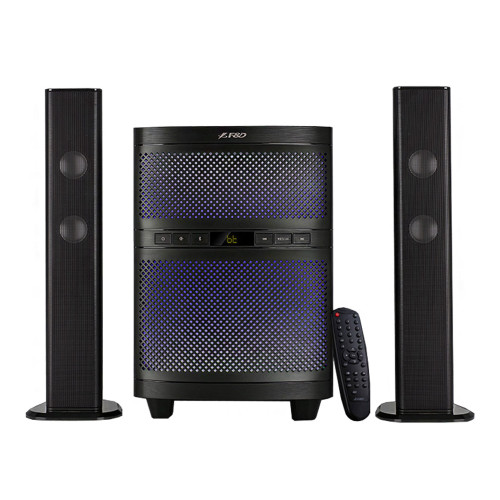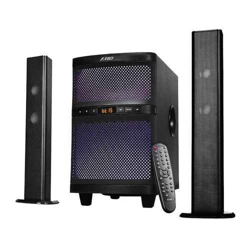 ساند بار مدل T-200X محصولی از برند F&D است که متشکل از یک ساب ووفر با درایور ۸ اینچی و دو اسپیکر ۲ اینچی است. این دستگاه جهت برقراری ارتباط بیسیم به بلوتوث نسخه 4 مجهز بوده و برد آن به ۱۵ متر میرسد، بنابراین پخش پلی لیست مورد علاقهتان توسط گوشی موبایل به راحتی امکانپذیر خواهد شد. علاوه بر آن ساندبار T200X به رابط RCA نیز مجهز است و میتوان توسط کابل RCA اتصال آن را به تلویزیون متصل نمود. بر روی بدنه خوش ساخت این محصول یک درگاه USB طراحی شده که از فلش مموری پشتیبانی میکند تا گزینههای بیشتری برای پخش موسیقیهای مورد نظرتان داشته باشید. ساب ووفر و اسپیکرها با توان خروجی کلی ۳۵ وات، حساسیت ۷۰ دسی بل و پاسخ فرکانسی ۳۰ هرتز الی ۲۰ کیلوهرتز به خوبی از پس ارائه صدایی شفاف و گوش نواز بر میآیند. اسپیکر خانگی T200X با دارا بودن کلیدهایی فیزیکی جهت مدیریت موسیقی، حالات پخش و نورپردازی و … و ریموت کنترل، سهولت بیشتری در استفاده از دستگاه را برای کاربران فراهم کرده است. یکی دیگر از ویژگیهای جذاب محصول نورپردازی داخلی آن است که جلوهای زیباتر به فضای منزل بخشیده و در نور کم یا تاریکی همراه با پخش موزیک لحظاتی به یاد ماندنی برای شما فراهم میکند. در نظر داشته باشید که این مدل از امواج رادیویی (اف ام) نیز پشتیبانی میکند که خبر خوبی برای دوست داران آن است. مجهز بودن به پنل حرفهای تنظیم صدا جهت افزایش کیفیت صدای خروجی و نمایشگر LED از دیگر مشخصات این مدل به شمار میرود. از دیگر مزایای دستگاه میتوان به طراحی خاص آن اشاره کرد به این شکل که امکان استفاده از اسپیکرها به صورت عمودی و افقی وجود دارد. بنابراین T-200X برای افرادی که فضای کمی در اختیار دارند گزینه مناسبی به نظر میرسد چرا که در حالت افقی فضای کمتری اشغال خواهد کرد.