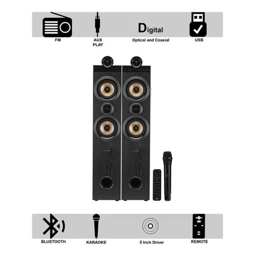 | سایر مشخصات اسپیکر | قابلیت ضبط صدا | قابلیت KARAOKE | قابلیت تنظیم BASS , TREBLE از روی کنترل | دارای بدنه چوبی جهت تقویت صدا | Separation: ≥45dB |