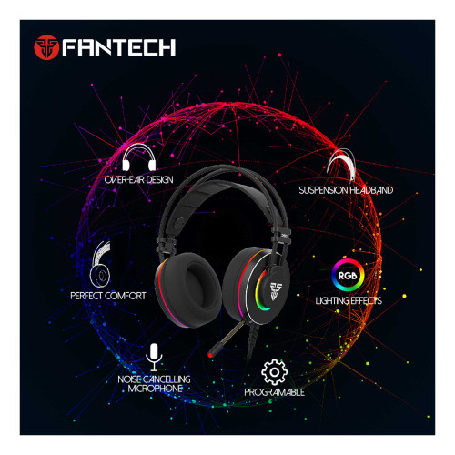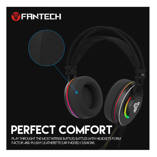 طراحی این هدست هم به زیبایی صورت گرفته و با حالت ارگونومیک خود در استفادههای طولانی مدت شما را خسته نمیکند؛ از سویی دیگر دستهی این هدست قابلیت تنظیم ارتفاع دارد تا شما هر طور که مایل باشید بتوانید آن را تنظیم کنید. این هدست با بهرهگیری از طراحی نرم در بالشتکها و دسته، راحتی هر چه بیشتر را برای شما ایجاد میکند. طراحی منحصر به فرد و عالی این محصول با بهرهگیری از نورپردازی RGB حالتی جذابتر به خود گرفته که باعث میشود محیط بازی برای شما و اطرافیان زیباتر شود. بواسطه نرمافزار اختصاصی محصولات Fantech شما براحتی میتوانید رنگ پردازی LEDها، کیفیت هدفون و یا حساسیت میکروفون را بطور دلخواه تنظیم کنید.