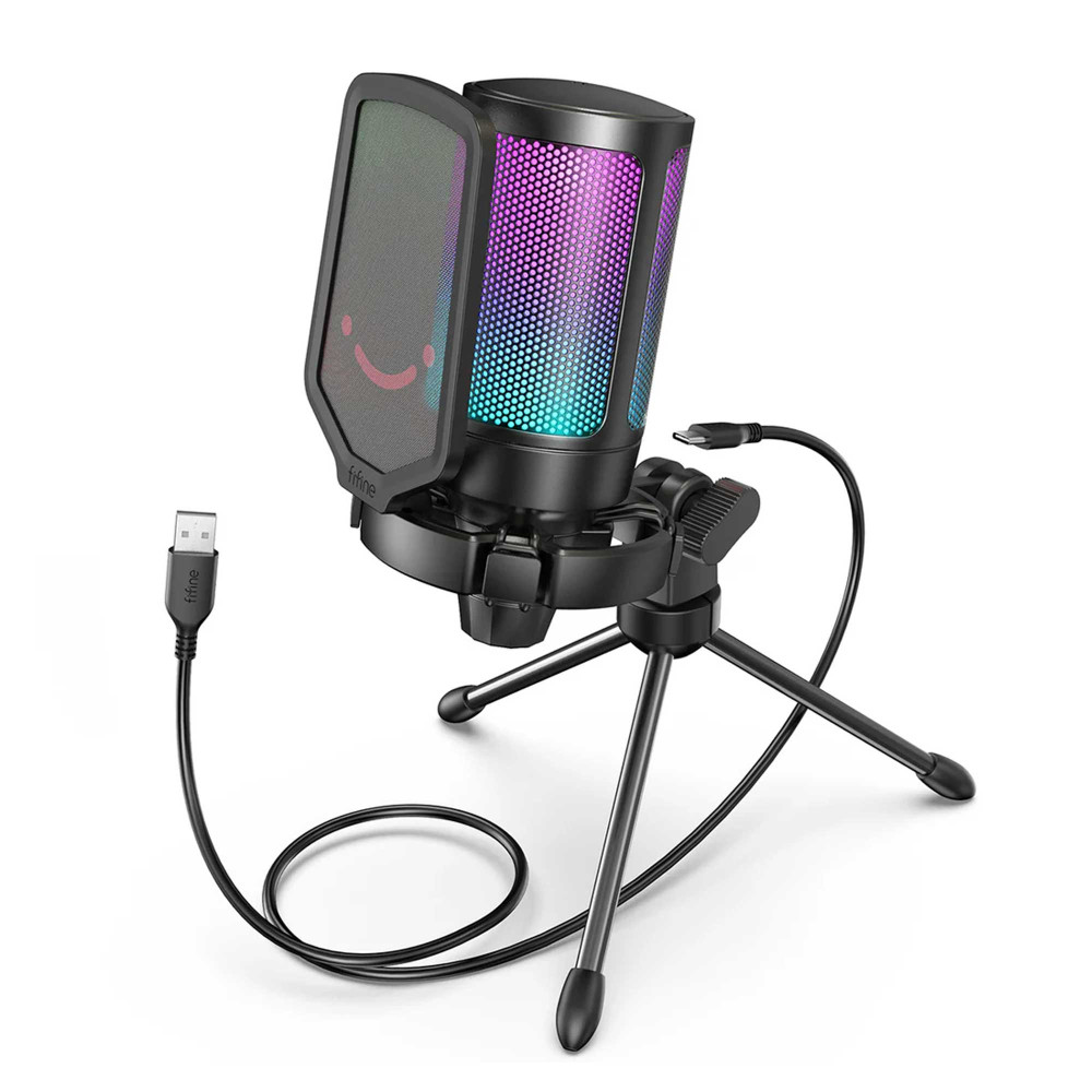 اگه دنبال یه میکروفون گیمینگ حرفهای هستین که کیفیت ضبط بالایی داشته باشه و همزمان ظاهر جذاب و مدرنی ارائه بده، مدل Ampligame A6V RGB از برند فای فاین یه گزینه عالیه. این میکروفون رومیزی برای استریم، بازیهای آنلاین و چت صوتی طراحی شده و با لپتاپ، کامپیوترهای خانگی، مکبوک و کنسول بازی PS5 سازگاره.